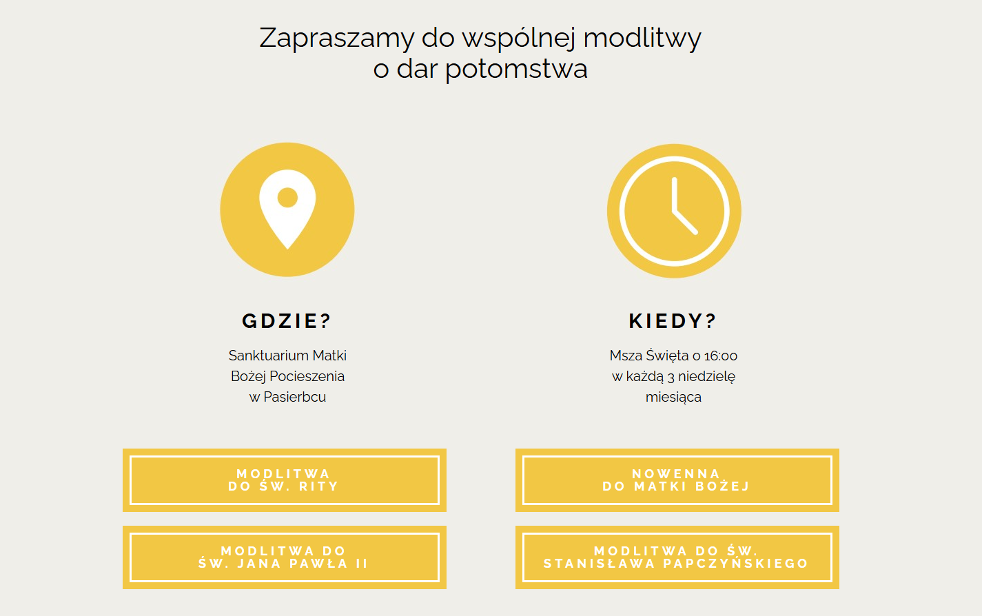 w każdą pierwszą sobotę miesiąca o godz. 18.00 (w okresie zimowym o 17.00) odbywa się nabożeństwo do św. Joachima i Św. Anny w intencji małżeństw bezdzietnych.